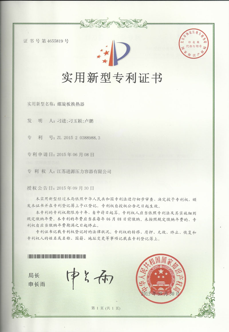 螺旋板換熱器專利